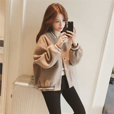2018 mùa xuân và mùa thu mới Hàn Quốc phiên bản của ulzzang ngắn đồng phục bóng chày áo len nữ sinh viên giản dị len áo khoác áo khoác dạ nữ hàn quốc