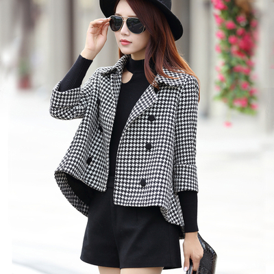 2018 mùa xuân và mùa thu mới houndstooth cloak ngắn áo len nữ đôi ngực áo sơ mi ngắn áo khoác jean nữ Áo khoác ngắn
