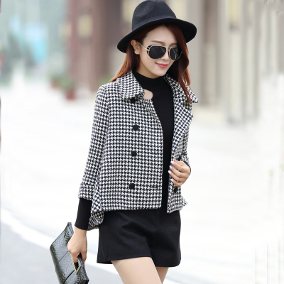 2018 mùa xuân và mùa thu mới houndstooth cloak ngắn áo len nữ đôi ngực áo sơ mi ngắn áo khoác jean nữ