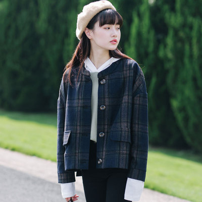 2018 mùa xuân văn học gió đại học tính khí ngọt ngào retro kẻ sọc Hàn Quốc phiên bản của hoang dã ngắn sinh viên áo len nữ áo khoác nữ đẹp 2021 Áo khoác ngắn
