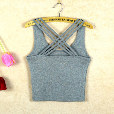 2018 new cotton nguyên chất màu rắn đáy mùa thu nhỏ sling đẹp sau lưng áo vest nữ mùa hè eo cao hở rốn ngắn thoi trang nu