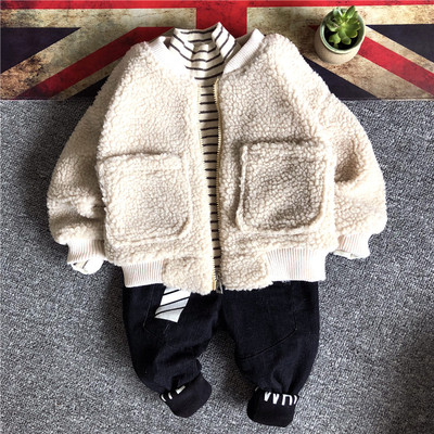2018 phiên bản Hàn Quốc mới của mùa thu đông cho bé trai mặc áo lông cừu nam bé trai cộng với áo nhung dày đẹp trai 2-7 tuổi áo khoác cho be gái 12 tuổi