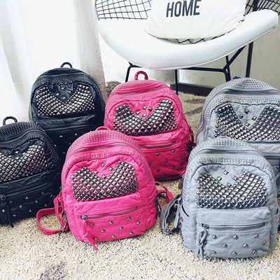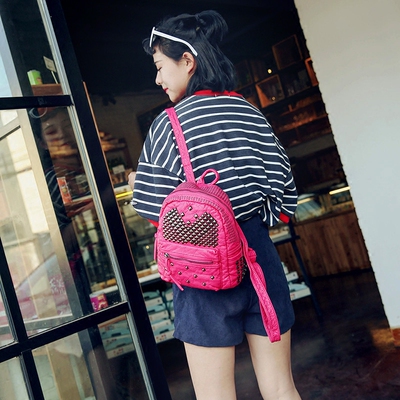 2018 phiên bản Hàn Quốc mới của túi đeo vai đinh tán da nữ mềm da thời trang ba lô giản dị xu hướng túi gió đại học - Ba lô ba lô học sinh tiểu học nữ Ba lô