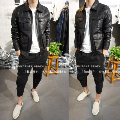 2018 thu đông ba chiều túi ESP áo khoác da đầu máy áo khoác da PU áo khoác nam 2021