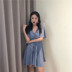 2018 tính khí mới váy màu xanh ngắn chic váy ngắn eo cao là mỏng một từ váy cẩn thận máy túi hip váy đầm xòe ngắn