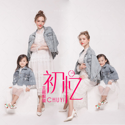 2018 triển lãm ảnh mới studio ảnh mẹ-con chụp ảnh quần áo mẹ và con gái thời trang tươi mới denim lady váy dài - Trang phục dành cho cha mẹ và con áo gia đình 3 người