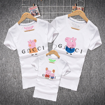 2019 gia đình mới trang bị áo thun ngắn tay mùa hè cho gia đình ba chú heo Peggy cỡ lớn bằng vải cotton nửa tay - Trang phục dành cho cha mẹ và con quần áo gia đình đi biển