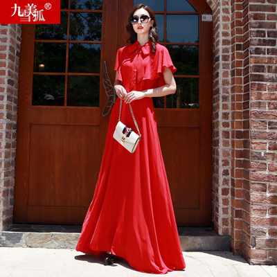 2019 phụ nữ mới đầu xuân hè váy châu Âu hàng châu Âu thủy triều đến mắt cá chân váy váy dài - Váy dài váy trắng đi biển Váy dài