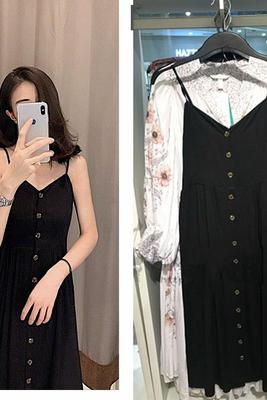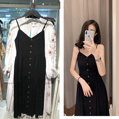 2019 triều 2019 hè đơn giản cho nữ dài đơn giản dây thun cổ chữ v váy có khóa một chiếc váy dài 735404 - A-Line Váy các kiểu đầm xòe