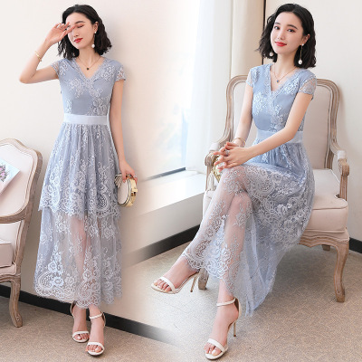 25 tháng 3, 28, 4, 30, 35, 35 tuổi Phiên bản Hàn Quốc của váy chữ A, áo dài ren nữ ngắn tay - A-Line Váy váy đầm