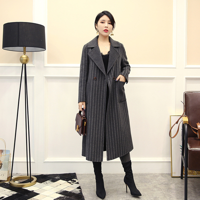 282318 chống mùa 2018 mới của Hàn Quốc phiên bản của sọc dài tay hai mặt cashmere áo phụ nữ phần dài áo áo khoác jean nữ