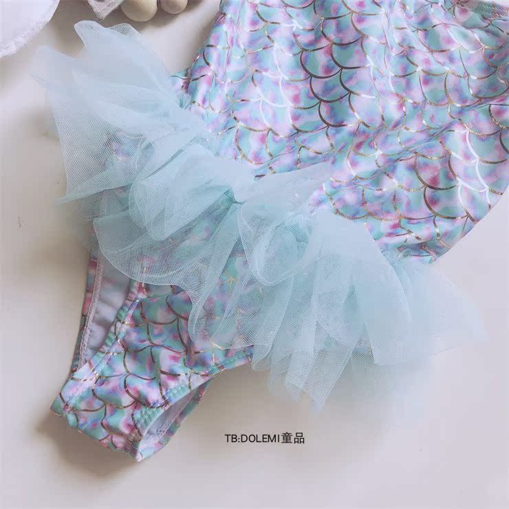 3-8 xuất khẩu Cô gái châu Âu và Mỹ bé tiên cá nàng tiên cá sáng bóng ren tay áo ngắn một mảnh áo tắm áo tắm tam giác - Bộ đồ bơi của Kid bán đồ bơi trẻ em Bộ đồ bơi của Kid
