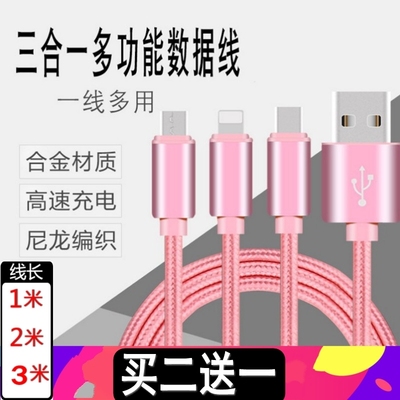 3 m Ba kéo phụ kiện đường dây điện thoại Huawei vinh quang 3C X 6 điện thoại Android bền dữ liệu phổ cáp OPPO Huawei Samsung âm nhạc như kê vivo - Phụ kiện kỹ thuật số dây sạc type c to lightning Phụ kiện kỹ thuật số