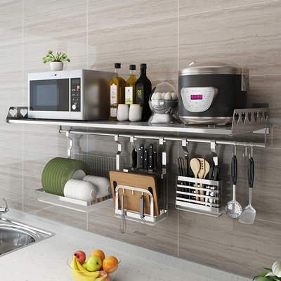 304 thép không gỉ bếp giá treo tường lò vi sóng nồi đồ dùng nhà bếp cung cấp lưu trữ kệ mặt dây chuyền kết hợp kệ gia vị Phòng bếp