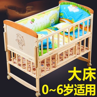80 giường cho trẻ em trải giường kiểu mùa hè trên không tiếng Anh: giường cũi gỗ rắn có thể được ghép nối với giường lớn - Giường trẻ em / giường em bé / Ghế ăn nôi tre cho bé