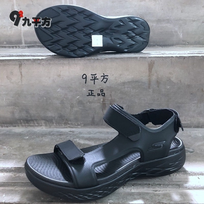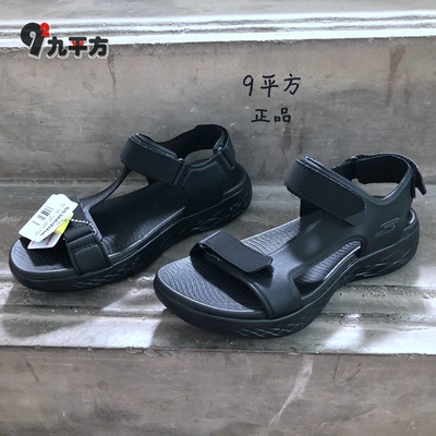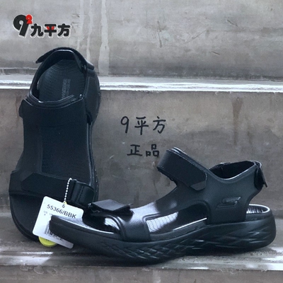 9 skechers vuông SKECHER nhẹ Velcro dép đệm nam giày thể thao bãi biển 55366 BBK giày quai hậu nam