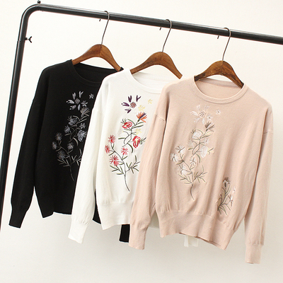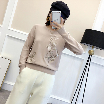 9266 áo len mới của Hàn Quốc phiên bản của vòng cổ đẹp thêu dài tay của phụ nữ hoang dã áo thun tay áo áo len áo sơ mi hàng đầu áo len nữ đẹp 2021
