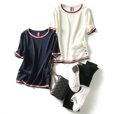 の [A535899] cười Han Tòa án Anh đơn giản giản dị tính khí thanh lịch cao cấp đan áo thun thời trang nữ
