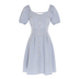 ALOHA STUDIO Gấp Pháp cao eo đèn lồng tay áo V-Cổ mặc dài kẻ sọc ăn mặc mẫu váy eo đẹp