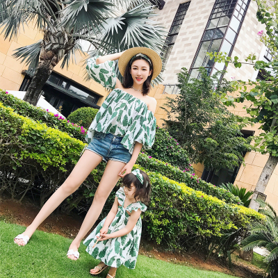 AM Sauce Majia [Gửi đai] Mùa hè In mới Bãi biển Cha mẹ mặc con gái Váy nữ quần áo bé trai Trang phục dành cho cha mẹ và con