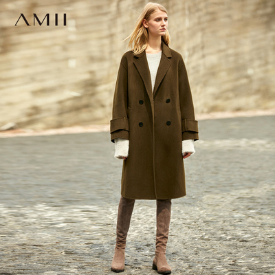 Amii tối giản gió đại học 100% len lông cừu hai mặt nữ mùa đông 2018 mới áo dài rộng áo khoác bò nữ
