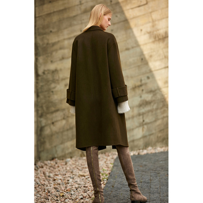 Amii tối giản gió đại học 100% len lông cừu hai mặt nữ mùa đông 2018 mới áo dài rộng áo khoác bò nữ Áo len lót đôi