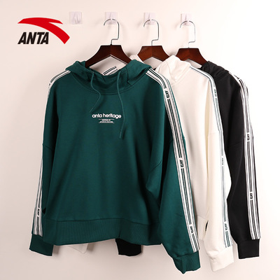 Anta áo len nữ xuân hè 2019 trang web chính thức mới là thương hiệu áo thể thao nữ sọc hoang dã - Thể thao lông cừu / jumper áo hoodie rộng