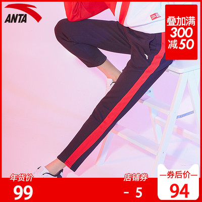 Anta plus nhung quần bó sát nữ mùa thu đông 2018 mới đen dày sọc lớn quần dệt kim giản dị quần tập gym nữ lưng cao