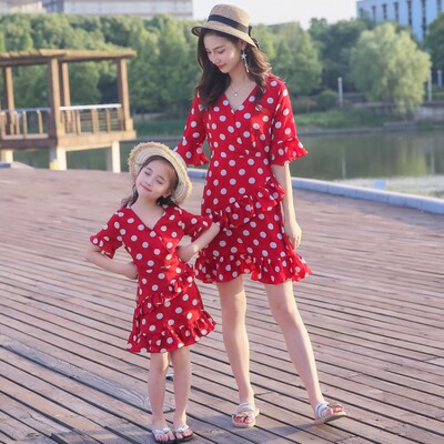 Áo bà mẹ 2019 mới hè bé gái cha-con đầm đầm voan công chúa đầm bé trai tay ngắn điểm sóng thủy triều - Trang phục dành cho cha mẹ và con quần áo gia đình 4 người