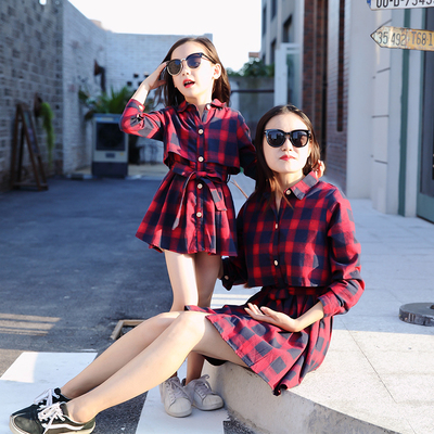 Áo bà mẹ mùa thu 2018 mới váy đầm bố mẹ con mặc phiên bản Hàn Quốc của áo sơ mi váy váy bé gái áo form rộng cho cả gia đình Trang phục dành cho cha mẹ và con