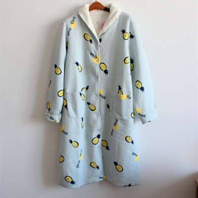 Áo choàng cô gái dày mùa đông Áo choàng cotton không khí Hoa văn trái cây tươi và đáng yêu ao ngu cao cap Night Robe