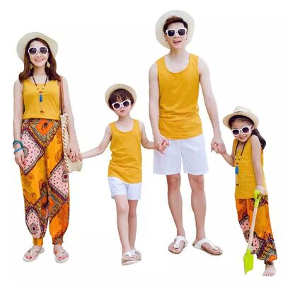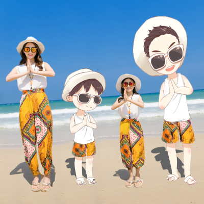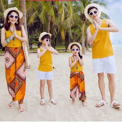 Áo dài cách bố mẹ mùa hè Áo thun đi biển đi biển quần vest vest phù hợp với du lịch Thái Lan nhóm quần áo mẹ và con gái mẹ và con bộ gia đình đi biển