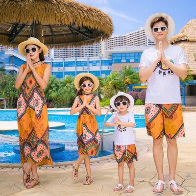 Áo dài cách bố mẹ mùa hè Áo thun đi biển đi biển quần vest vest phù hợp với du lịch Thái Lan nhóm quần áo mẹ và con gái mẹ và con bộ gia đình đi biển Trang phục dành cho cha mẹ và con