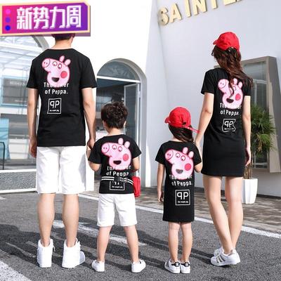 Áo dài cha mẹ cho bé mùa hè mới 2019 phim hoạt hình gia đình ba áo thun ngắn tay - Trang phục dành cho cha mẹ và con thoi trang tre em Trang phục dành cho cha mẹ và con