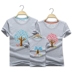 Áo dài cha mẹ cho con mùa hè 2018 mới mẹ và con trai tải một gia đình ba mùa hè bông biển phim hoạt hình ngắn tay áo thun thủy triều bộ pijama cho nhà 4 người Trang phục dành cho cha mẹ và con