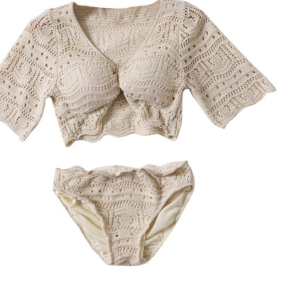 Áo gió đỏ 2019 mới Thái gợi cảm chia đôi tay áo bikini đan màu be mùa xuân nóng bỏng đồ bơi nữ - Bikinis bộ đồ bơi dài tay Bikinis