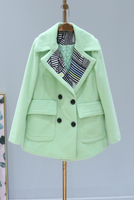 Áo khoác 2017 mùa đông quần áo hiệu giảm giá của phụ nữ 7D3066 khí pocket đôi ngực móc hoa ve áo len ngắn áo dạ nữ đẹp Áo khoác ngắn