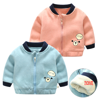 Áo khoác bé dày cộng với nhung nam 0-1 3 tuổi nữ bé mùa thu đông mùa đông áo khoác bé áo măng tô ngắn trẻ em