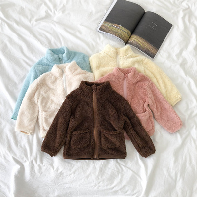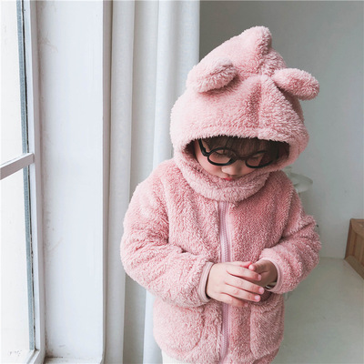 Áo khoác bé gái có khóa kéo 2018 mùa đông mới cho bé áo len trẻ em áo khoác nhà áo lông cừu cho bé