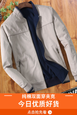 Áo khoác cotton nam trung niên phần mỏng mùa xuân và mùa thu dụng cụ hai mặt áo khoác nam trung niên áo khoác form rộng