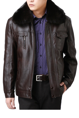 Áo khoác da nam trung niên và áo khoác da nam nhung dày mùa thu và mùa đông Đàn ông trung niên cộng với áo khoác bố áo phao nam hàn quốc Quần áo lông thú