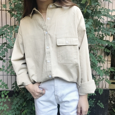 Áo khoác denim phong cách Hồng Kông của phụ nữ retro Hồng Kông hương vị đầu xuân và mùa thu áo khoác thiết kế ý nghĩa của gió nhỏ dài tay bf gió - Áo sơ mi dài tay các kiểu áo sơ mi hoa nữ đẹp Áo sơ mi dài tay