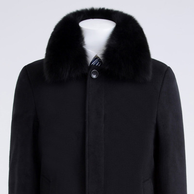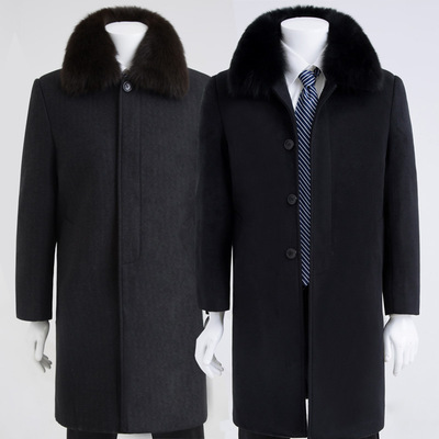 Áo khoác len nam trung niên cộng với nhung dày lông cáo dài cổ áo len len áo khoác cũ ấm áp áo khoác nỉ nam