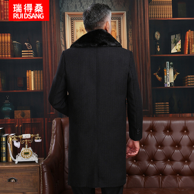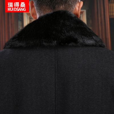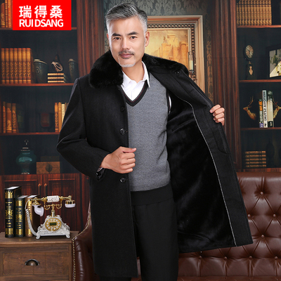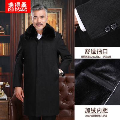 Áo khoác lông cho nam trung niên mùa đông cộng với áo nhung dày cho bố mặc áo len dài cho nam trung niên áo choàng nam