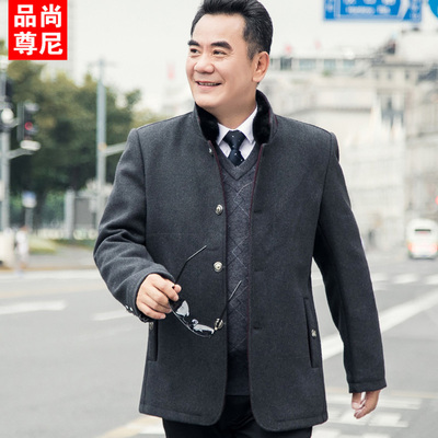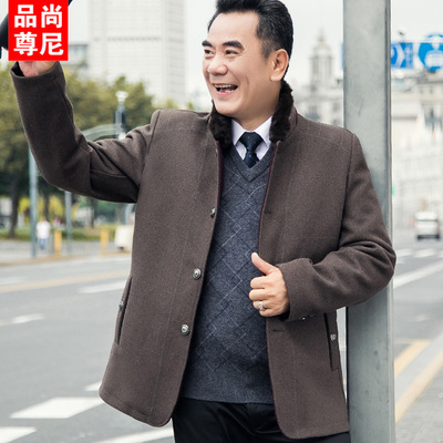 Áo khoác lông mùa đông cho cha cộng với nhung dày 40-50 tuổi trung niên áo lông cổ áo len nam 2018 mới áo khoác dạ nam