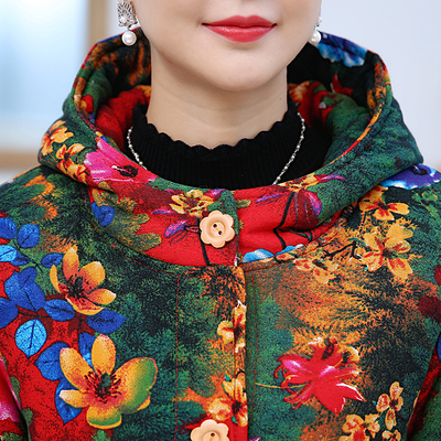 Áo khoác mùa đông cho mẹ và áo khoác nhung dày cho phụ nữ trung niên áo trùm đầu dài 40-50 quần áo cotton đầm u40 sang trọng