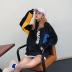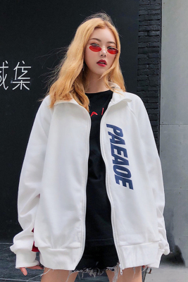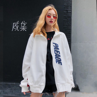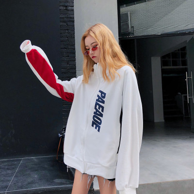 Áo khoác nam giới và phụ nữ đầu mùa thu 2018 mới của Hàn Quốc lỏng Harajuku dây kéo hit thư màu in ấn đứng cổ áo áo len sinh viên áo cardigan nữ
