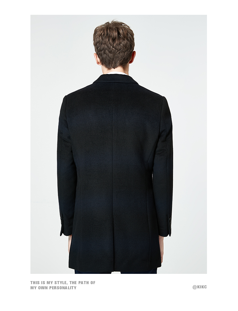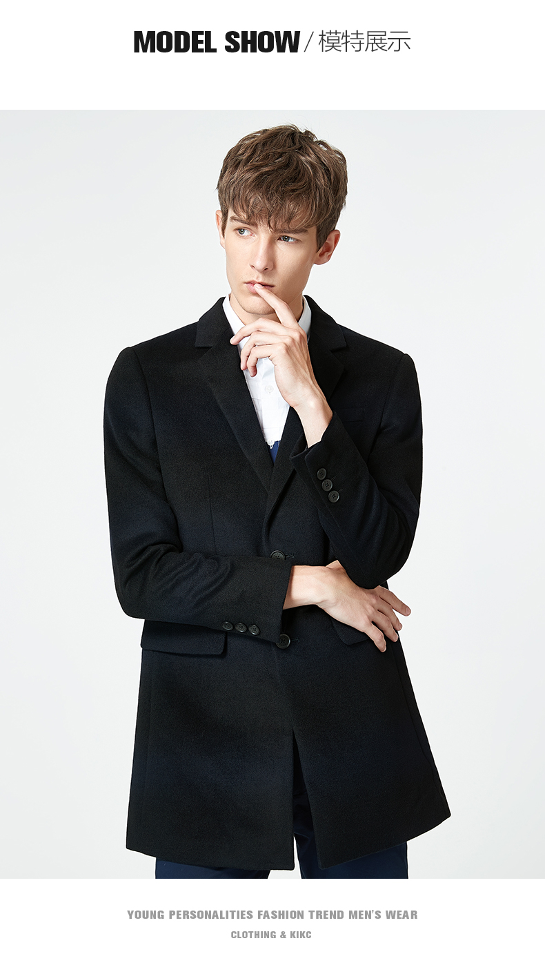 Áo khoác nam Kikc nam 2018 thu đông mới màu đen mới dài phù hợp với cổ áo xu hướng trẻ trung áo len nam áo khoác nam trung niên