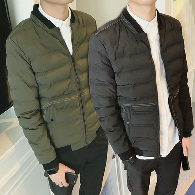 Áo khoác nam mùa đông Cotton mới Đàn ông ngắn dày Slim Cotton Chăn cá tính Đàn ông quần áo mùa đông Cotton bóng chày áo khoác nam hàng hiệu