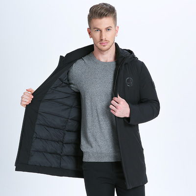 Áo khoác nam trung niên 2018 mới áo cotton nam xuống đệm bông ấm áp áo khoác dài đoạn trùm đầu mùa đông áo dạ nam hàn quốc